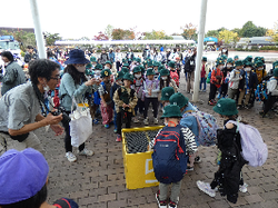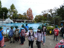 その後、ペンギンが散歩をしているのを見たり、モルモットに触ったりして見学•体験を進めています。子供たちは動物と触れ合い、楽しく学習を進めています。