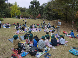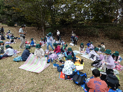 お弁当はお友達と輪になって食べました。みんな美味しそうにパクパクと食べていました。