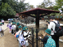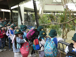お弁当の後も見学と体験を続けました。カンガルーにヤッホーと掛け声をかけたり、キリンを見て大きいとびっくりしたり、カワセミの鳴き声に合わせて大笑いしたりしていました。